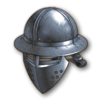 Характеристики:Описание:Искусно модифицированный стрелковый шлем. Изначально его забрало служило лишь практичным целям, обеспечивая дополнительную защиту в бою. Ныне же оно в первую очередь предназначено для сокрытия лиц убийц и грабителей, тем самым невольно превратившись в маску страха, оцепеняющего каждого, кому не посчастливилось взглянуть в её глаза.