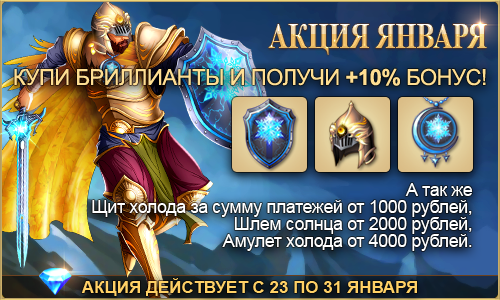 За сумму платежей во время акции от 1,000 рублей во время акции вы единоразово получите уникальный подарочный артефакт Щит холода бесплатно!