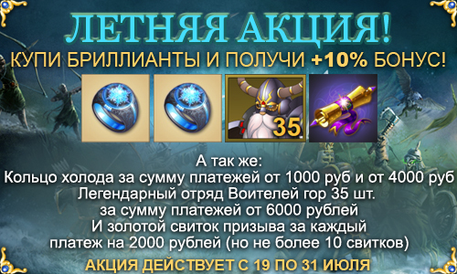 За сумму платежей во время акции от 1,000 рублей во время акции вы получите уникальный подарочный артефакт Кольцо холода бесплатно!