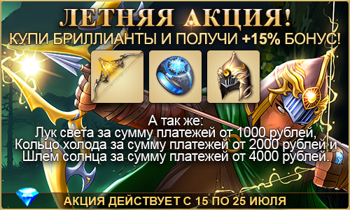 Купи бриллианты любым способом и получи +15% к платежу бесплатно!