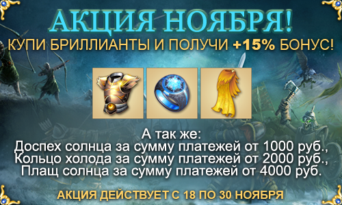 За сумму платежей во время акции от 1,000 рублей во время акции вы получите уникальный подарочный артефакт Доспех солнца бесплатно!